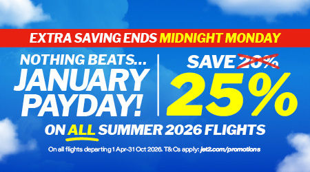 You can't beat that just-booked feeling - and it's even better when you've bagged yourself a great flight deal. With our discounts and offers, you can do just that. We want to make sure you get the most for your money, which is why we offer deals alongside our friendly low fares. Did you know our sister company, Jet2holidays, also has lots of package holiday deals? Take a look and see how you can save on your next getaway.